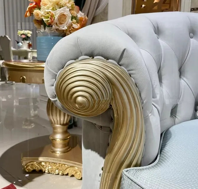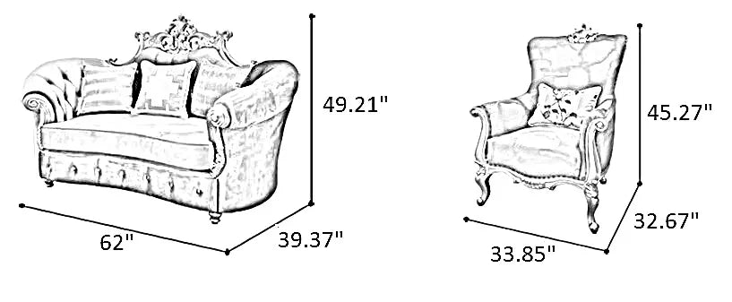 The 4 piece velvet upholstered European sofa set delivers classic comfort while enhancing the beauty and attractiveness of your living area. With its sturdy solid wood construction, this European sofa set is certain to survive for many years to come.