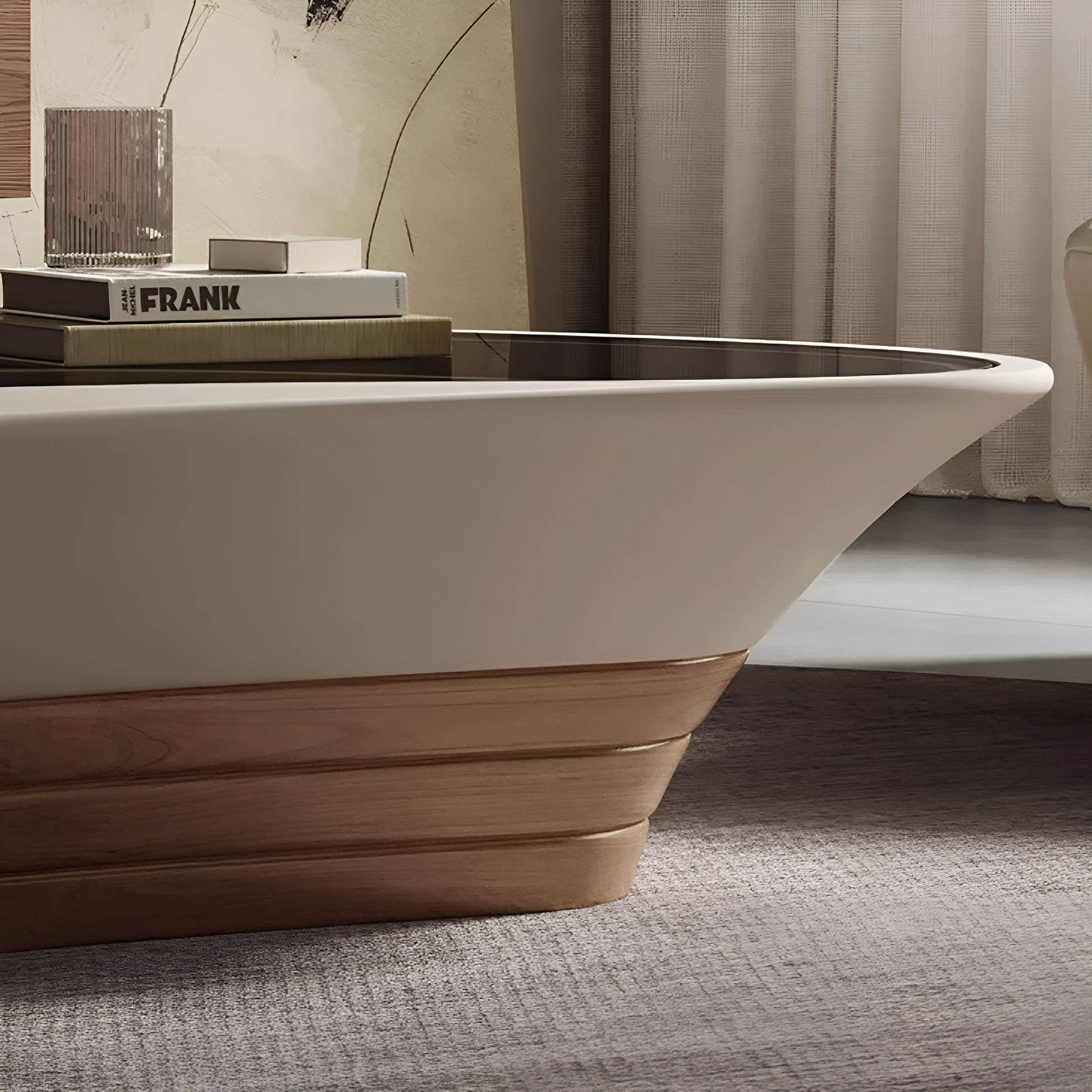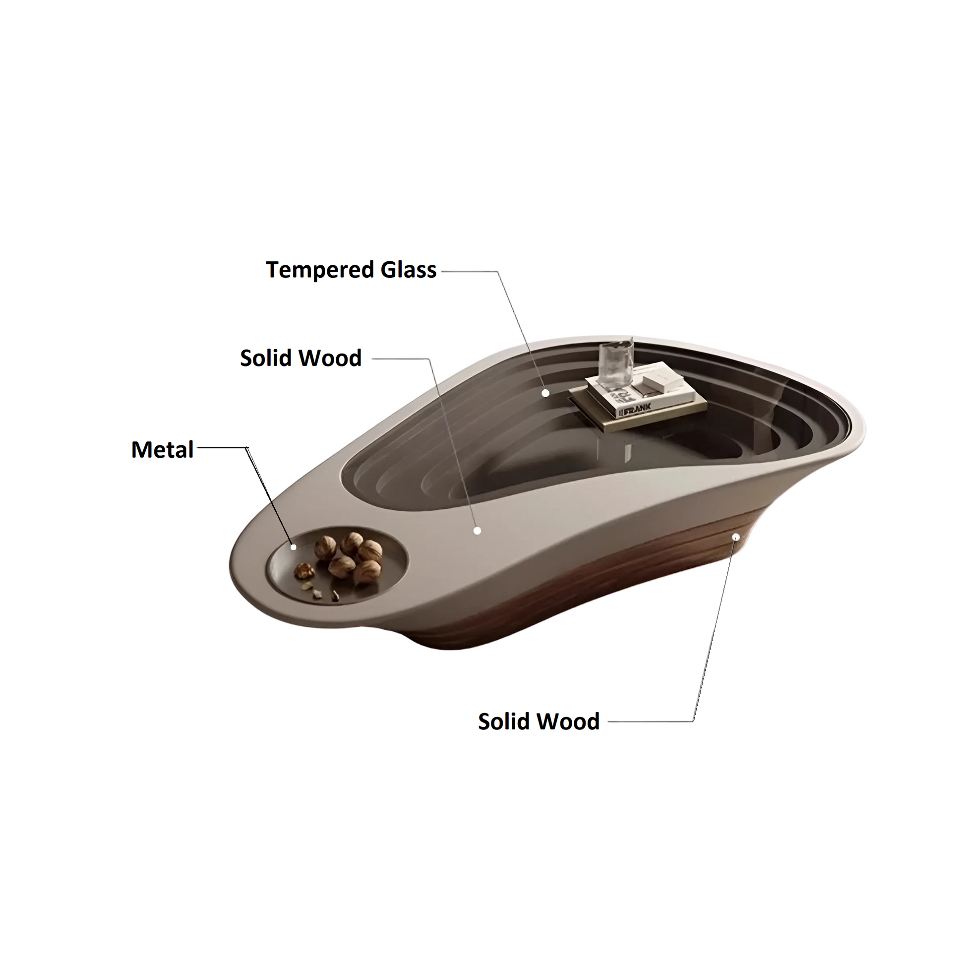 Any living room is made more inviting and fashionable with the Artistic Glass Top Wooden Coffee Table. It is supported by a sturdy solid wooden structure combined with a sleek metal plate and tempered glass top. In everyday usage, the coffee table feels stable and balanced thanks to the sturdy wooden base.