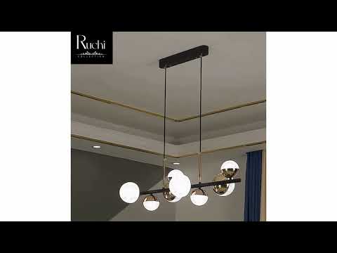 Modern LED Ball Pendant Light is made of metallic ironware body with acrylic heads. The LED pendant light features a sleek design crafted from plate metal. The multiple heads with a glossy metallic body and adjoining metallic rods attached to the metallic base enhance the aesthetic appeal.