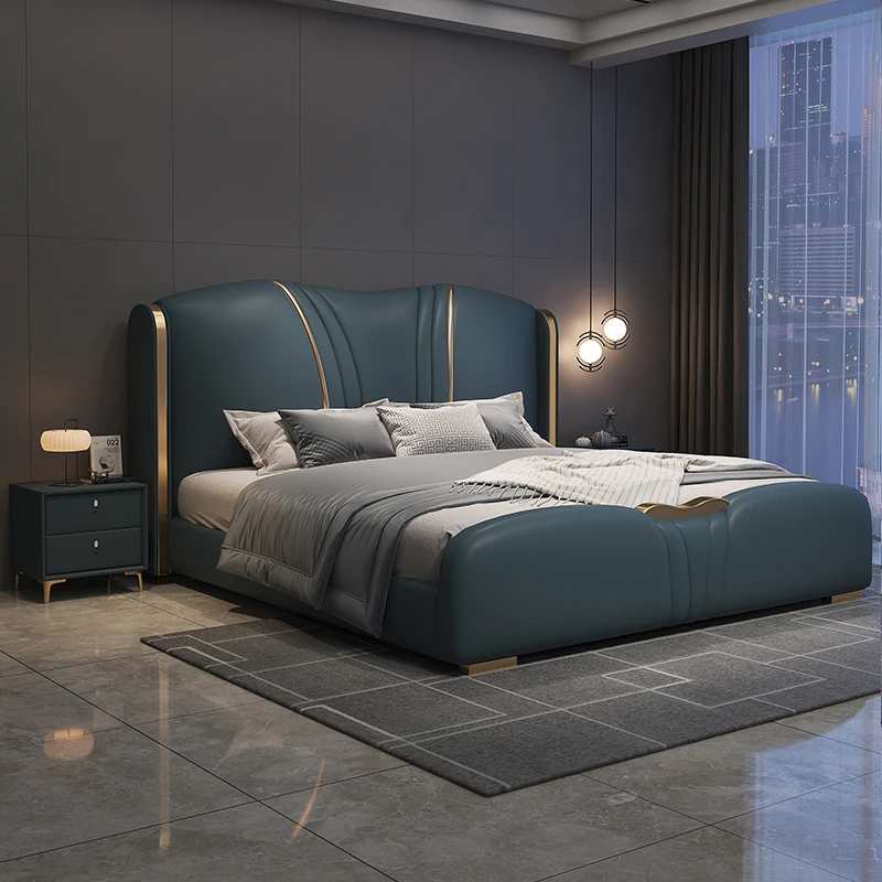The sleek metal legs add a modern touch. This modern bed is ideal for updating your master bedroom or designing a contemporary suite. The Modern Luxury Leather Bed redefines contemporary comfort at home with its elegant look and unnoticed functionality.