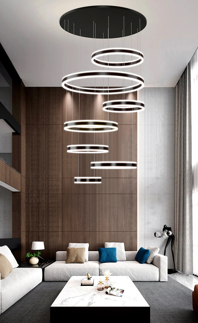 The layered design adds depth and elegance, perfect for various spaces like living rooms, bedrooms, dining areas, kitchens, and hotels. The remote control configuration installed with the lighting fixture makes the LED chandelier more technological and digital.
