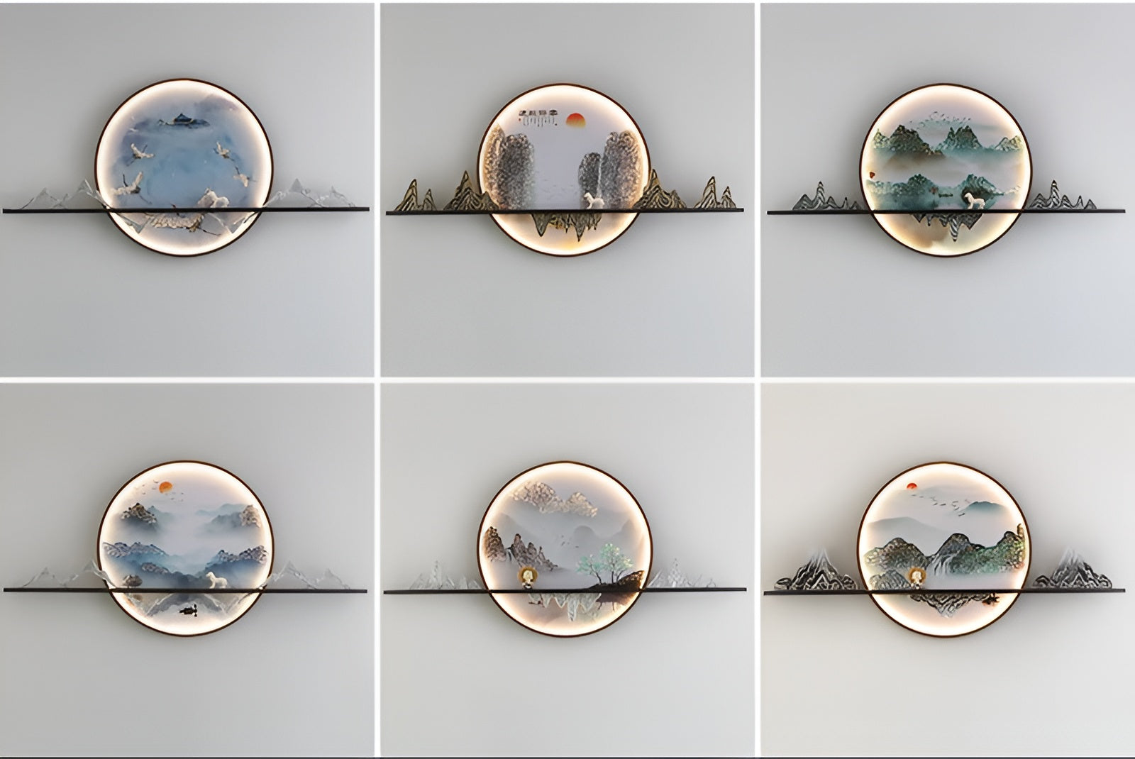 The Mountain Valley LED Mural Wall Lamp transforms your living room into an elegant and inviting space. To achieve this effect, the design combines durable PVC with a sleek metallic frame and a powerful LED light source inside the LED wall lamp. Moreover, the craftsmanship captures the essence of a mountain range with a serene lake nestled in a valley, evoking scenic beauty that calms the mind.