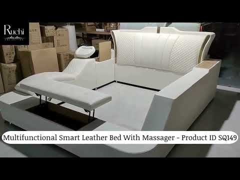 The electric powered Multifunctional Smart Leather Bed With Massager, which blends comfort, luxury, and convenience, will transform your bedroom. Long-lasting stability and style are ensured by the robust wood frame, leather upholstery, and strong metal legs of this leather smart bed. The medium-density foam offers exceptional comfort, while the sideboard and footboard's multifunctional storage spaces keep your space clutter-free.